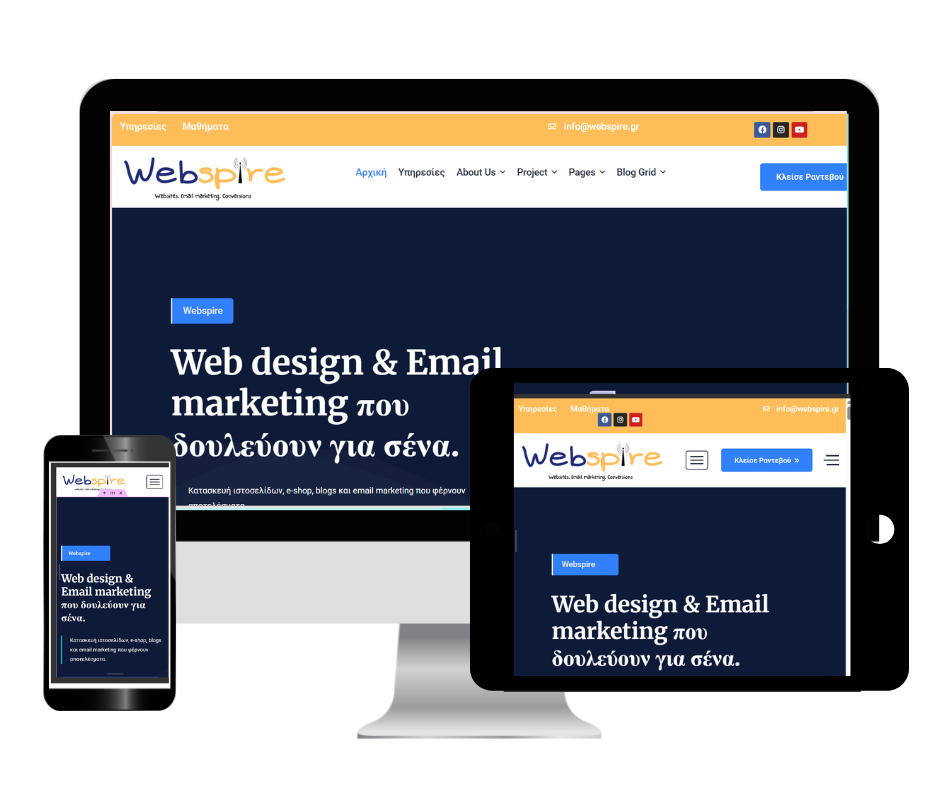 Στη Webspire αναλαμβάνουμε να δημιουργήσουμε την ιδανική ψηφιακή εικόνα για σένα, είτε ξεκινάς τώρα είτε θέλεις να αναβαθμίσεις ό,τι ήδη έχεις.